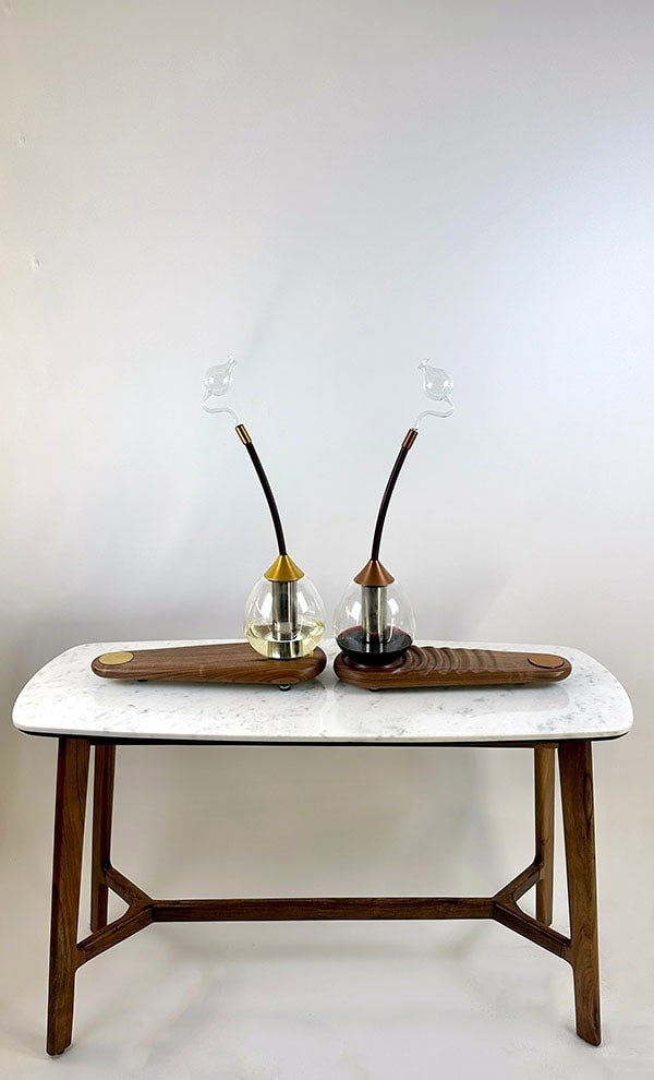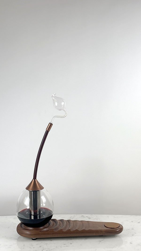 American Black Walnut, Borosilicate Glass, Stainless Steel, Silicone, Delrin, Electronics